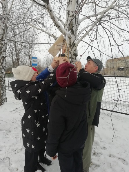 Зимой особое внимание уделяется охране птиц. Именно они окружают людей круглый год, приносят радость и пользу. Для зимующих птиц основной источник пропитания становится, практически недопустим, многие птицы погибают от холода и голода. Чтобы помочь птицам, совместно с учителями ребята изготовили кормушки и развесили их на территории школы.