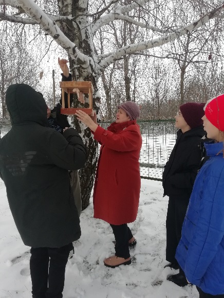 Ребята с нетерпением ждут пернатых друзей, чтобы с удовольствием те угощались предложенным кормом. Обучающиеся с интересом наблюдают за птицами, прилетевшими покормиться. Каждый день они будут подсыпать специальный корм для них.