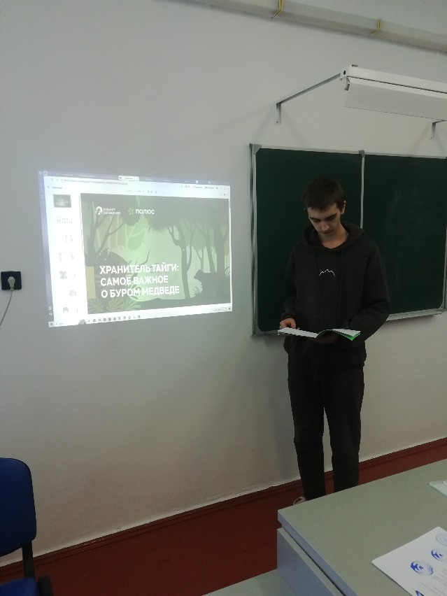 Обучающиеся вместе с учителем Белевской Е.Н. отправились в увлекательное виртуальное путешествие в мир заповедной природы и просмотрели материалы урока «Хранитель тайги: самое важное о буром медведе».