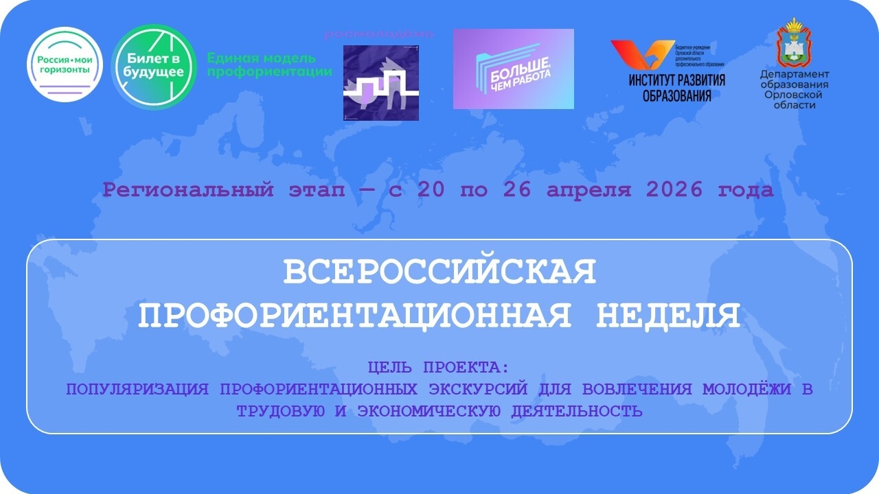 С 20 по 26 апреля реализуется региональный этап Всероссийской профориентационной недели в рамках проекта «Больше, чем работа».